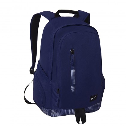 Раница Nike в синьо. Моделът е подходящ за свободното време, за училище или пък за спортуване. Изработена е от висококачествена материя. Разполага със специално отделение за лаптоп до 15 инча. Също така има два странични джоба и един отпред. Презрамките са уплътнени и удобни за носене.