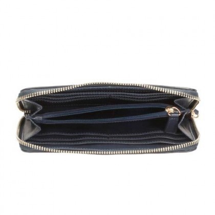 Затваря се с цял цип, а във вътрешността има много слотове за карти, достатъчно място за банкноти и отделно джобче с цип за монетите.