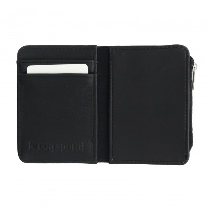 Кожен портфейл Le Coq Sportif е подходящ за ежедневието. Стилният модел е произведен от 100% естествена кожа в практичен черен цвят. Разполага с отделение за банкноти и монетник с цип.