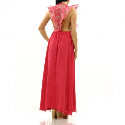 Рокля MET е атрактивен и много женствен модел, подходящ за по-специални поводи. Дизайнът съчетава изрязана горна част с флорален десен и долна част  дължина до глезена. Добавен е ефект на прокъсване по ръба на роклята. Съчетава се добре със сандали на платформа или висок ток.