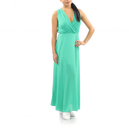 Дълга рокля Imperial е свеж и удобен модел за лятната почивка и ежедневните задачи. Моделът е с бюстие тип „прегърни ме“ и изрязан гръб, като акцентът е поставен върху красивата метална верижка. Полата е разкроена и свободна с дължина до земята. Разполага с подплата до средата на бедрото и закопчаване на кръста.