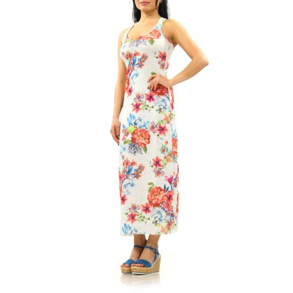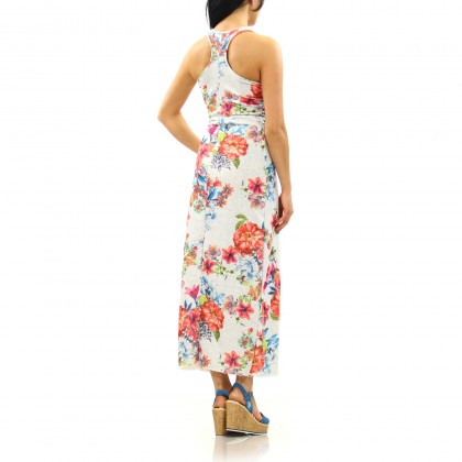 Рокля MET е нестандартен модел, съчетаващ женствено излъчване и висок комфорт в ежедневието. Роклята е с широко овално деколте и изрязан гръб тип „боксьорски“. Именно това е в контраст с нежния флорален десен и дължината до глезена. Атрактивен избор за ежедневието и свободното време. Комбинира се отлично със сандали на платформа и дори равни обувки.
