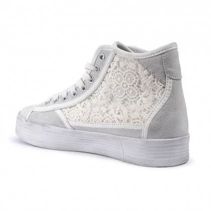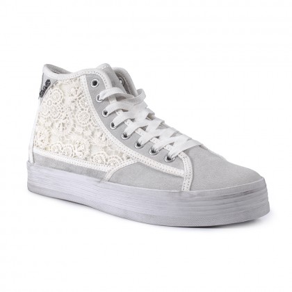 • Комбинация между дантела и бял велур и допълнителни бели ленти, които придават собствен стил и излъчване.