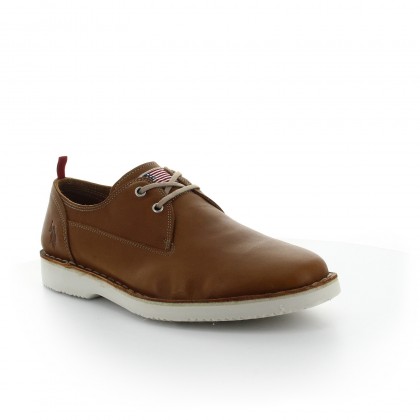 Мъжки обувки U.S. Polo са произведени от висококачествена естествена кожа в наситен кафяв цвят. Моделът е подходящ за ежедневието като се съчетава идеално със спортно-елегантни дрехи. Разполага с дискретни регулиращи връзки и бяла контрастираща подметка.