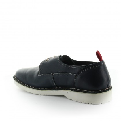 Мъжки обувки U.S. Polo са произведени от висококачествена естествена кожа в наситен тъмносин цвят. Моделът е подходящ за ежедневието като се съчетава идеално със спортно-елегантни дрехи. Разполага с дискретни регулиращи връзки и бяла контрастираща подметка.