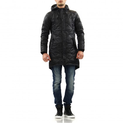 Мъжко яке IMPERIAL в черно е стилно решение за ежедневието. Моделът комбинира топла и лека материя с асиметрична задна част, имитираща фрак. Комбинира се отлично с панталон и дънки, както и боти и ботуши. Разполага с множество джобове, за да съхранявате важните си вещи.
