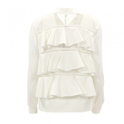 Дамско горнище Imperial е чудесно решение за постигане на една нестандартна спортна визия. Моделът е решен в класически бял цвят, разполага с еластични маншети на ръкавите и голяма халка на ципа, а акцентът е поставен върху гърба, където са разположени воали на няколко реда.