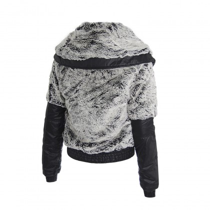 Дамско яке комбинация от гладка кожа и пух. Елегантен и стилен модел, който ще задоволи претенциите на най-взискателните дами. Голямата яка е удобна и топка, подходяща за студените зимни дни. Идеалният модел за дамите с индивидуален стил и неповторим вкус.