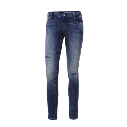 Класически модел дънки със средна дължина и изчистена визия от син деним. Тесни конус крачоли, пет джоба и закопчаване с метално копче отпред.