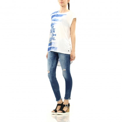 Дамски дънки PLEASE са със slim-fit дизайн, който придава модерен вид и осигурява висок комфорт. Моделът е с вталени крачоли, като акцентът е поставен върху техния край. Добавените ефекти на прокъсване придават актуална визия за всеки ден и свободното време. Комбинират се със спортни и спортно-елегантни дрехи и обувки.