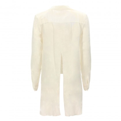 Бяла дамска блуза MET е подходящ избор както за ежедневието, така и за по-специални поводи. Произведена е от лека, висококачествена материя, а дизайнът я превръща акцент във визията. Моделът е с асиметрична задна част, имитираща фрак. Особено интересна е предната част, където по дължина на реверите са разположени ивици от ефектни камъчета.