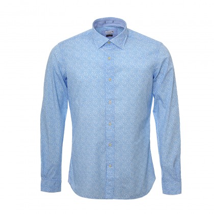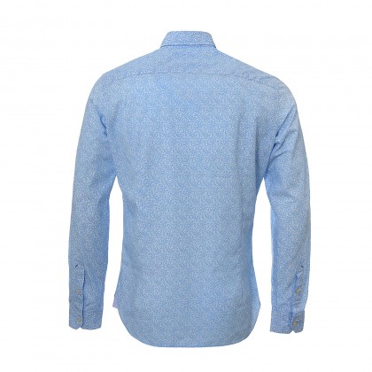 Мъжка риза с дълъг ръкав U.S. Polo в син цвят. Моделът е с класическа кройка, в синьо с десен на бели цветчета. Подходящ избор за съчетаване спортно-елегантен или елегантен аутфит.