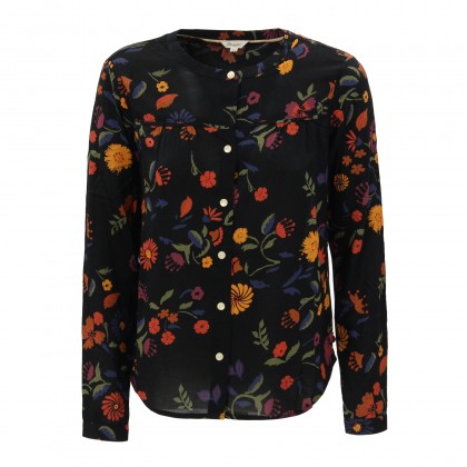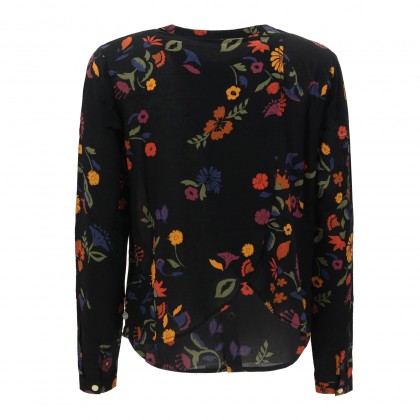 Дамска блуза Wrangler е стилен избор за ежедневието в офиса или делова среща. Използваната материя е лека и ефирна, а избраният флорален десен поставя акцент във визията.Моделът е без яка и се закопчава с копчета. Комбинира се отлично с пола или панталон.