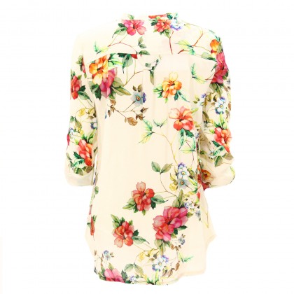 Дамска блуза с ¾ ръкав Please е отлично решение за ежедневието, свободното време и по-специални поводи. Моделът е произведен от лека материя в неутрален цвят и нежен флорален десен. Дизайнът включва V-образно деколте и удължен заден панел. Съчетава се перфектно с дънки и панталон, както и спортно-елегантни обувки.