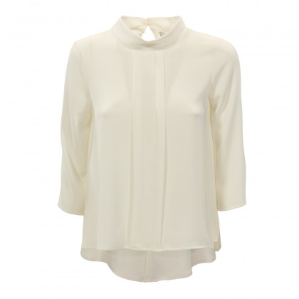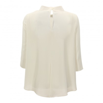 Дамска блуза със 7/8 ръкав PLEASE в бяло. Практичен избор за ежедневието или при по-специални случаи. Моделът е произведен от памучна материя в универсален бял цвят. Блузата е със свободна кройка и 7/8 ръкав. Комбинира се страхотно с пола, панталон и дънки, както и елегантни обувки.