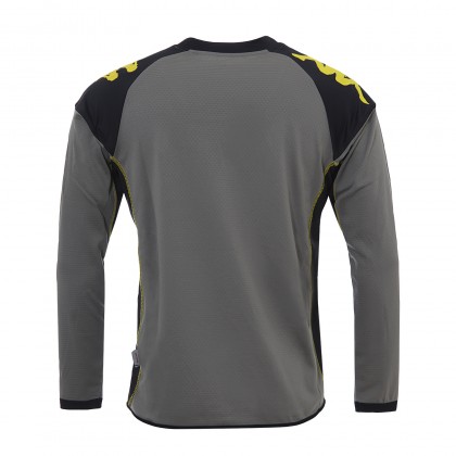 Мъжко спортно горнище Kappa в сиво и черно. Моделът е подходящ за свободното време и спортуване. Материята е висококачествена и едновременно осигурява комфорт като запазва визията на дрехата непроменена. Спортно горнище Kappa е с еластични маншети за повече удобство. Универсален сив цвят с черни елементи.