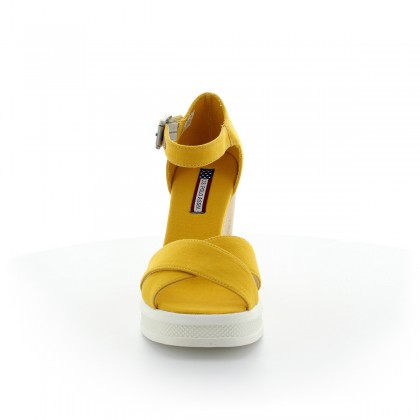 Дамски сандали U.S. Polo в жълто. Моделът е подходящ за ежедневието и свободното време. Използваните материи предлагат комфорт през целия ден, дори в най-големите горещини на лятото.