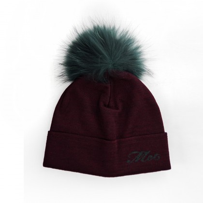 Дамска вълнена шапка с помпон в цвят череша. Състав: 50% вълна, 50% полиакрил. Удобна и топла шапка за студените зимни дни. Подходяща за вашия спортен екип, приятна на допир, направена от висококачествена материя.