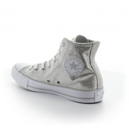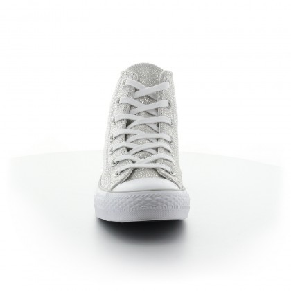 Дамски кецове CONVERSE предлагат удобство и стил в ежедневието. Високопрофилният модел е изработен от естествена кожа със сребрист отблясък. Подметката е стабилна в бял цвят. Съчетават се идеално със спортни и спортно-елегантни дрехи.