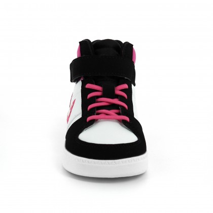 Висока и удобна обувка за вашето момиченце, съчетание на изкуствена кожа и набук, с подплатена част около глезена за по- голямо удобство и стабилност, както и обичаните от децата велкро лепенки. Нейната фина цветова схема, както и забавното личице на панда в задната част, допринасят за ефектен спортно-елегантен външен вид, в който вашите деца ще се влюбят.