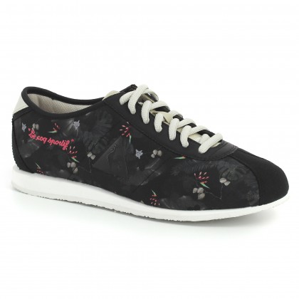 Дамски спортни обувки Le Coq Sportif са решени в практичен черен цвят и освежени с дискретен флорален мотив. Обувките са леки и удобни, отличен избор за ежедневието. Изработени са от висококачествена материя, а подметката гарантира стабилност и комфорт.
