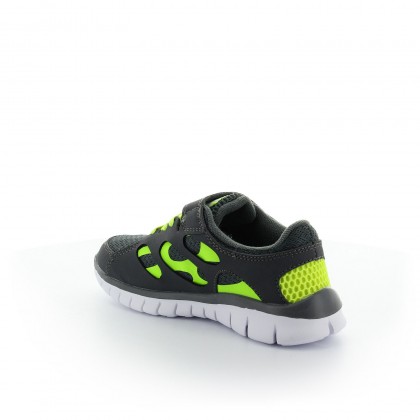 Детски маратонки KAPPA в тъмносиво и неоново жълт цвят. Моделът е проектиран, за да осигури максимум комфорт по време на разходки, спортуване или игри.