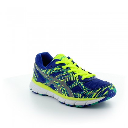 Детски маратонки Asics в синьо и жълто. Моделът предлага изключителен комфорт, а свежият цвят е отличен акцент в спортната ви визия. При създаването на маратонките са използвани леки и устойчиви материи, както и други за повишаване комфорта на краката. В задната част на обувките е разположена гел-подложка, която омекотява сътресението при стъпване. Сменяемата стелка не позволява на стъпалата да се изпотяват и дава възможност за пране и подмяна при нужда; Светлоотразяващият материал повишава сигурността, когато се движите при оскъдна светлина.