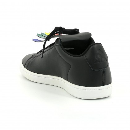 Дамски спортни обувки le coq sportif са специално предложение за почитателите на практичното и нестандартното. Дизайнът включва естествена кожа в черен цвят, а акцентът са цветните ленти на езика. Разполага със стабилна подметка и регулиращи връзки. Комбинират се отлично с дрехи в спортен и спортно елегантен стил.