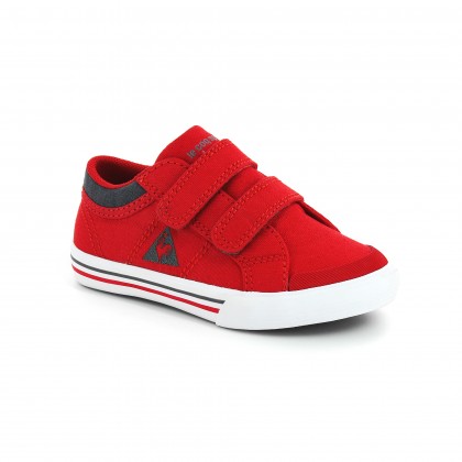 Детски спортни обувки Le Coq Sportif в червено. Моделът е ежедневен и подходящ за съчетаване със спортно-елегантни или спортни дрехи. Използваната материя е лека и удобна, а подметката стабилна на различни повърхности. Класическият сив цвят е освежен с бялата лента на подметката и сините елементи в горната част на обувката.