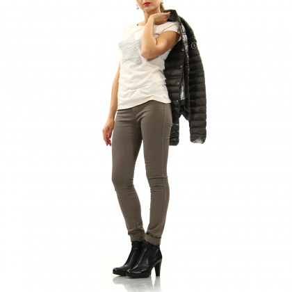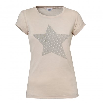 Дамска блуза с къс ръкав U.S.Polo. Ежедневен модел, подходящ за съчетаване със спортно-елегантни дрехи и обувки. Използваната материя е висококачествена, а десенът – стилизирана звезда с десен на американското знаме в сребристо. Кройката е класическа – овално деколте и къс ръкав.
