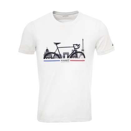 Мъжка тениска Le Coq Sportif в бяло. Моделът е с класическа кройка в стилен бял цвят. В предната част е разположен интересен десен от Париж. Тениската е подходящ избор и по време на спортуване, тъй като е произведена от висококачествен памучен плат, който не задържа топлината и попива отделената влага. Моделът се съчетава отлично с дрехи в спортно-елегантен или спортен стил.