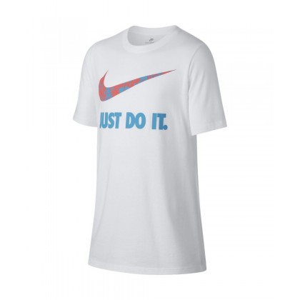 Детска блуза с къс ръкав Nike е перфектно решение за спортуване и свободното време. Моделът е произведен от 100% памук в практичен цвят. Дизайнът включва овално деколте и свободна кройка, като акцентът е поставен върху мото на бранда „JUST DO IT“, както и логото. Комбинира се отлично с дрехи и обувки в спортен стил.