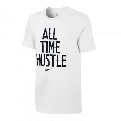 Мъжка блуза с къс ръкав Nike е практичен избор за ежедневието и свободното време. Моделът е с класическа кройка – овално деколте и къси ръкави. Акцентът е поставен върху надписа „ALL TIME HUSTLE“. Произведена е от висококачествена памучна тъкан в универсални цветове. Комбинира се отлично със спортни и спортно-елегантни дрехи и обувки.