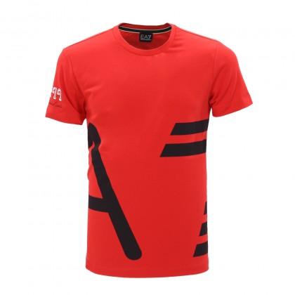 Мъжка тениска EA7 в червено/черно. Подходящ избор за ежедневието и свободното време. Произведена е от висококачествена памучна тъкан и предлага класическа кройка и несравним комфорт. Комбинира се отлично със спортни дрехи и обувки, а практичният бял цвят повишава свободата за съчетаване с други цветове.