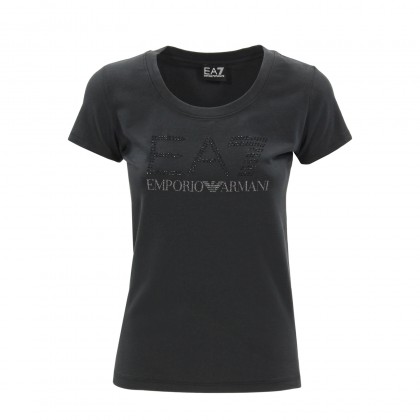 Дамска блуза с къс ръкав EA7 в черно. Моделът съчетава изключително удобство, високо качество на изработка и материя и практичност.