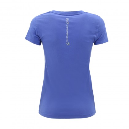 Дамска блуза с къс ръкав EA7 в синьо. Моделът съчетава изключително удобство, високо качество на изработка и материя и практичност.