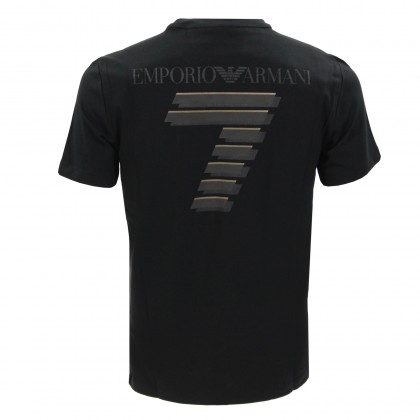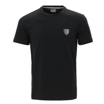 Мъжка тениска EA7 в черно. Моделът представлява класическа тениска с обло деколте и къс ръкав. Произведена е от висококачествена памучна материя, осигуряваща комфорт в ежедневието и при спортуване.