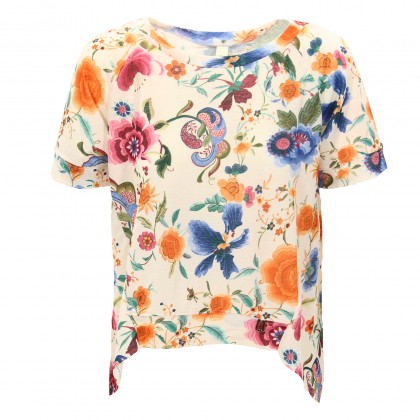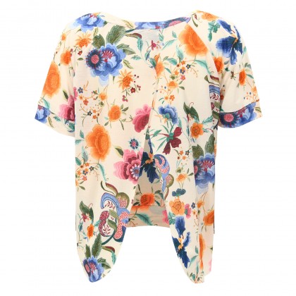 Дамски асиметричен топ MET предлага модерна визия и комфорт в ежедневието. Моделът е произведен от висококачествена материя със свеж флорален десен. Асиметричната дължина и късия ръкав дават нестандартен облик на дрехата, което я прави идеална, ако искате да привлечете внимание. Съчетава се отлично с изчистени и най-добре едноцветни спортно-елегантни и елегантни дрехи.