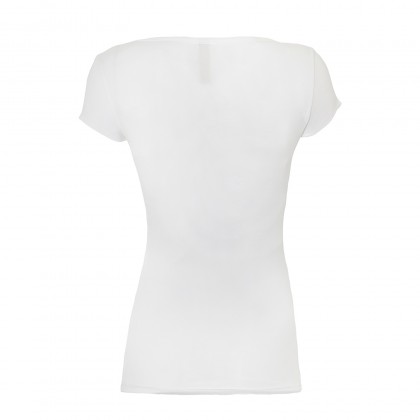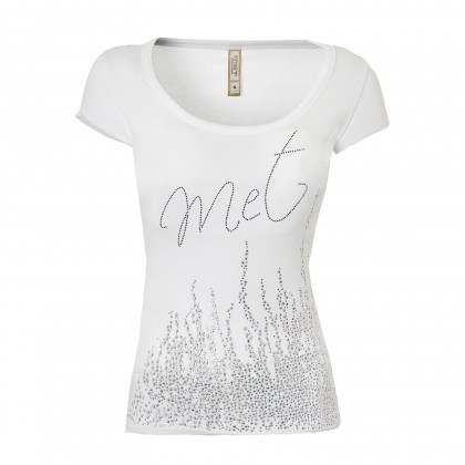 Дамска блуза с къс ръкав MET в бяло. Моделът е изчистен и много красив. Подходящ е за ежедневието, свободното време, а защо не и за по-официален повод. Може да се комбинира с дънки, панталон, пола, къси панталони и т.н. в спортно-елегантен или елегантен стил. Класическият бял цвят е допълнен от блестящи елементи в долната част на блузата, както и надписът на гърдите.
