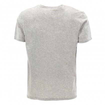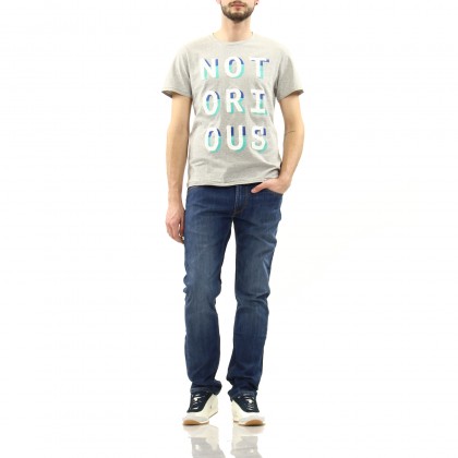 Мъжка тениска LEE е с regular-fit модел, който предлага комфорт и класическа визия. Произведена е от памучна материя в цвят сив меланж. Акцентът е поставен върху принтирания графичен слоган „Notorious“.