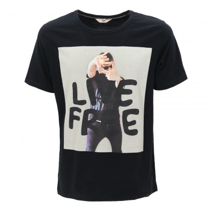 Мъжка тениска LEE е произведена от памучна материя и предлага класически дизайн, комбиниран с цветен принт на снимка и лозунг „Live Free“. Дизайнът на модела е с овално деколте и къс ръкав.