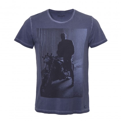 Синя мъжка блуза с къс ръкав Wrangler е подходящ избор за включване в спортно-елегантна визия. Тя е изработена от 100% памук в стилен тъмносин цвят. Класическата кройка е идеална основа за фото изображението на моторист. Комбинира се отлично с дънки, панталон и къси панталони.