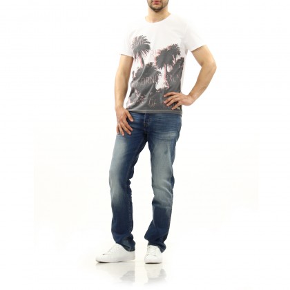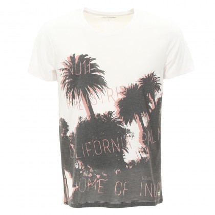 Мъжка блуза с къс ръкав Wrangler е удобен и атрактивен модел за ежедневието и свободното време. Моделът е с класически дизайн – овално деколте и къси ръкави, като акцентът е поставен върху монохромния десена на палми. Комбинира се отлично със спортни и спортно-елегантни дрехи и обувки.