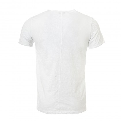 Мъжка тениска Imperial в бяло. Моделът е подходящ за ежедневието. Класическата кройка е разнообразена с елементи, имитиращи прокъсан плат. Те са разположени на деколтето и джобчето в ляво на гърдите. През средата на гърба минава вертикален шев. Тениска Imperial е изработена от висококачествен памучен плат.