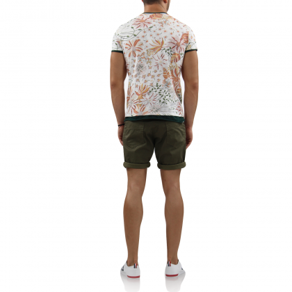 Мъжка блуза с къс ръкав Imperial съчетава класически дизайн с нестандартен десен, за да се превърне в акцент на вашата спортно-елегантна визия. Моделът е произведен от мека памучна тъкан с атрактивен флорален десен. Черното джобче си кореспондира идеално с черните елементи по деколтето, ръкавите и долната част на блузата. Комбинира се идеално с дрехи и обувки в спортен стил.