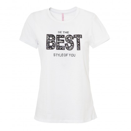 Дамска блуза с къс ръкав Imperial е универсално предложение за всеки повод. Моделът е с овално деколте, свободна кройка и отива както на спортни, така и на спортно-елегантни дрехи. Произведена е от висококачествена памучна материя в стилен бял цвят, а акцентът е поставен върху надписа на гърдите.