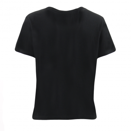 Дамска блуза с къс ръкав Please впечатлява с изчистена визия и интересна щампа. Моделът е с овално деколте и свободна кройка, а акцентът е поставен върху голямото сърце и животинския мотив. Комбинира се отлично с дрехи и обувки в спортен стил.