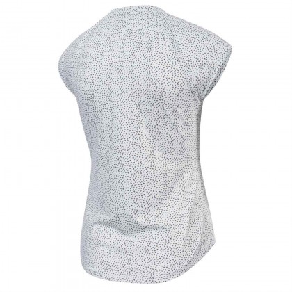 Дамска блуза с къс ръкав Nike е подходящ избор за спортуване и особено при тенис. Моделът е произведен от Dri-Fit материя, която извежда отделената влага от тялото и запазва кожата суха. Дизайнът е с V-образно деколте, ръкави следващи движенията без да ги ограничават и удължен заден панел. Всичко това подобрява спортните постижения като гарантира максимален комфорт и свобода на движенията. Комбинира се отлично със спортни дрехи и обувки.
