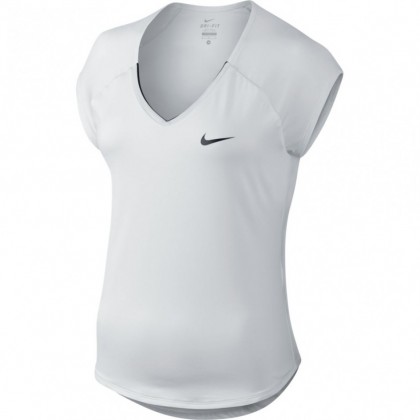 Дамска блуза с къс ръкав Nike е отлично решение за спортуване и свободното време. Моделът е произведен от висококачествена Dri-Fit материя, която не задържа отделената влага и поддържа кожата суха. Разполага с V-обрано деколте и ръкави, които осигуряват натурално усещане при движение. Съчетава се отлично с дрехи и обувки в спортен стил.  Спортен модел;  V-образно деколте;  Dri-Fit материя;  Не задържа отделената влага;  Материя – 88% полиестер, 12% спандекс;  Цвят – бял/черен.
