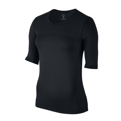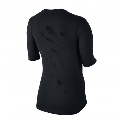 Дамска блуза с къс ръкав Nike Pro Hypercool е страхотно решение за спортуване и свободното време. Моделът е произведен от високотехнологична материя, осигуряваща пълна свобода на движенията, отлична циркулация на въздуха, извеждане на отделената от тялото влага и изчистена визия. Дизайнът включва овално деколте и леко удължен заден панел.